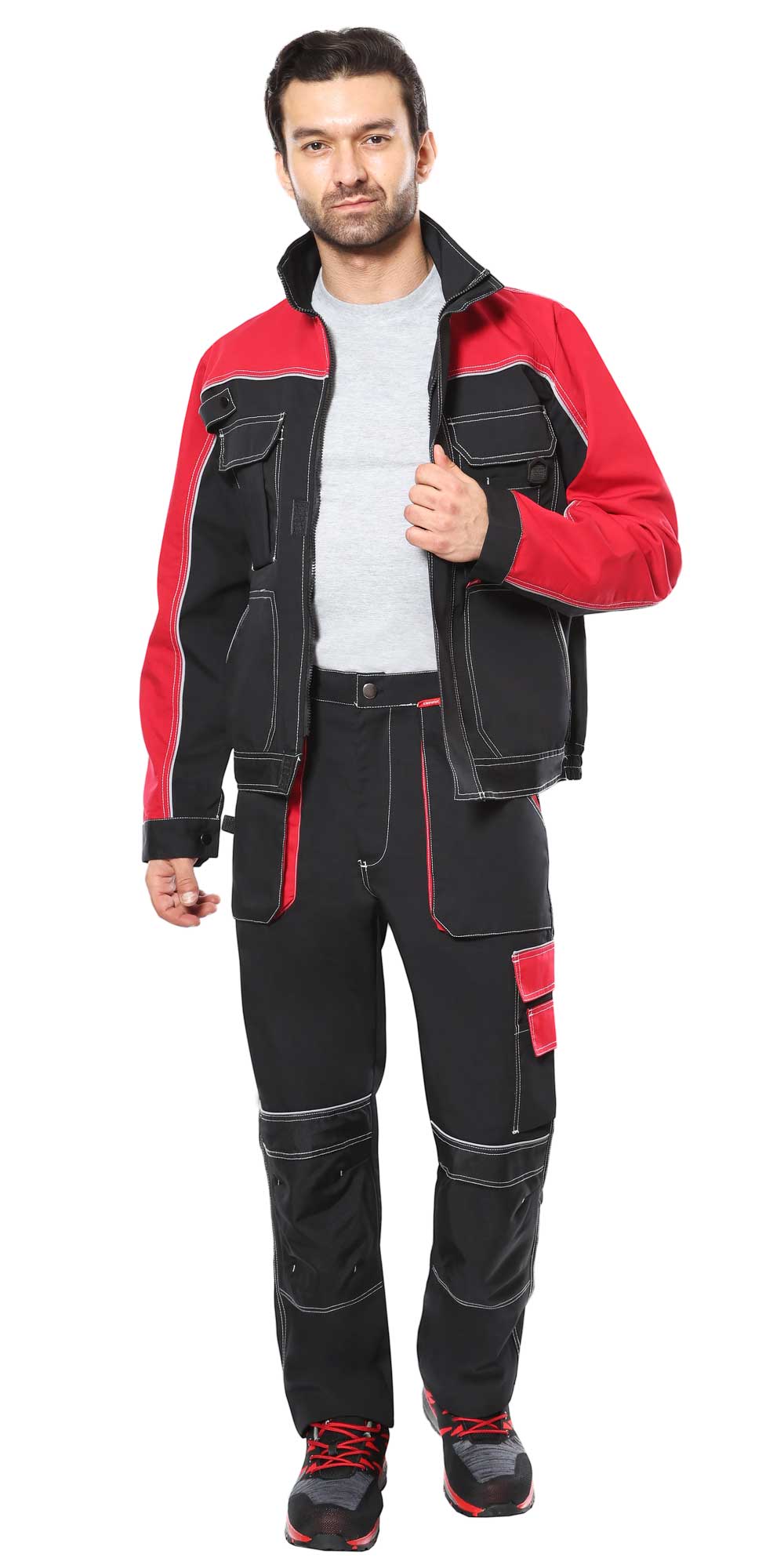 Костюм АГАТ куртка, брюки черный с красным пл. 260 г/кв.м. ВО отделка