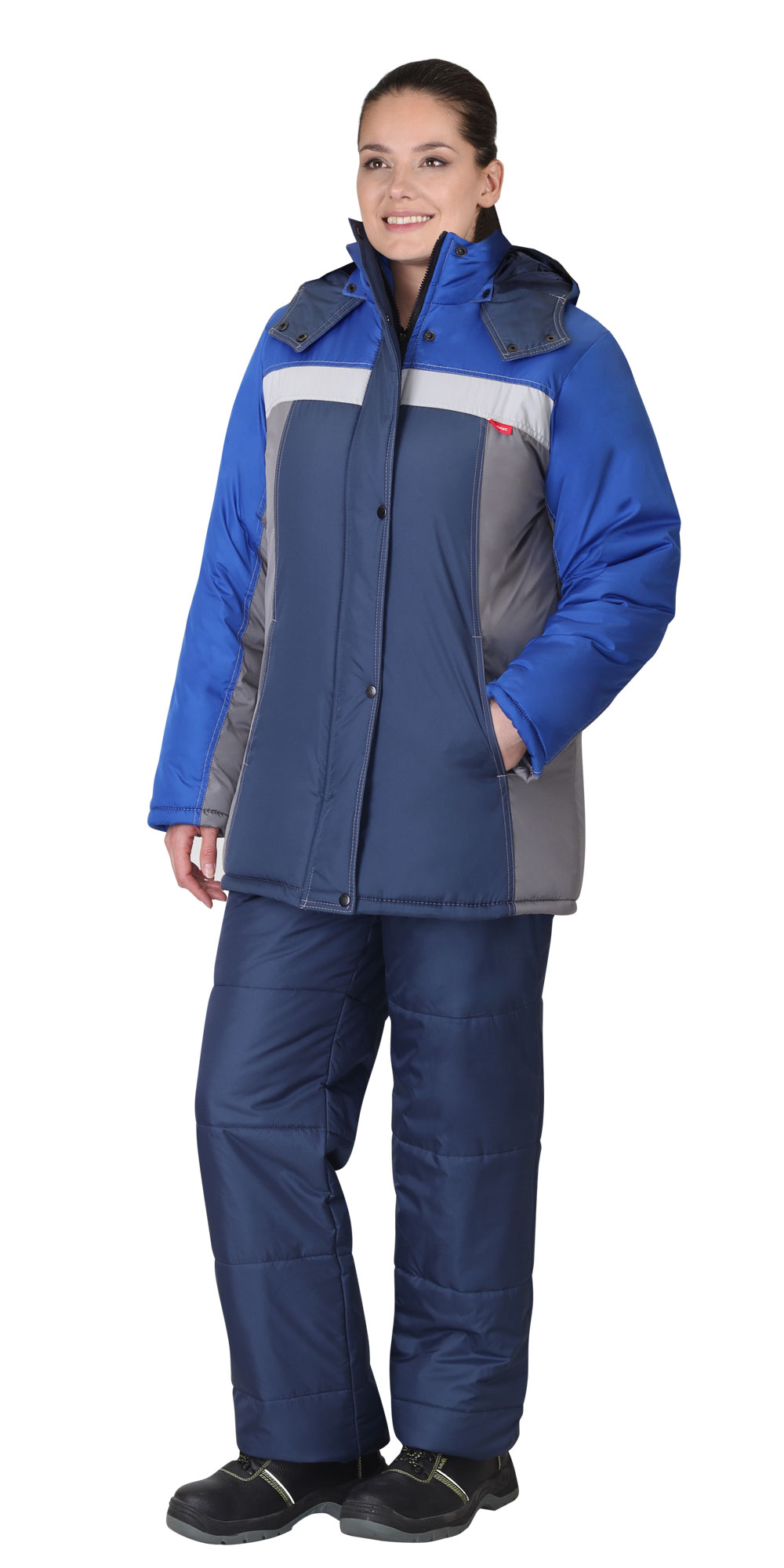 Куртка женская, прямого силуэта, с притачной утеплённой подкладкой, с центральной бортовой застёжкой на двух замковую тракторную тесьму "молния" и внешним ветрозащитным клапаном с 5-ю кнопками, с воротником "стойка" и съёмным утеплённым капюшоном; с боковыми карманами в рельефных швах.Ткань: "Дюспа", состав: 100% п/эТкань подкладочная: "Таффета", состав: 100 % - п/эУтеплитель: Синтепон, 120 г/м2 - 3 слоя (итого 360 г/м2) Характеристики Вид изделия: Куртка Пол: Женский Сезон: Зима Размерный ряд: с 88-92 по 120-124 Ростовка: с 158-164 по 170-176 Утеплитель: Синтепон 120 гр/м.кв Подкладка: 100% п/э Пакет утеплителя: 3 слоя Цвет отделки: Красный, жемчужный